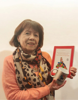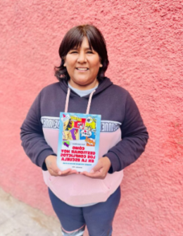 Emiliana Moreno Vásquez, apoderada de Antofagasta que participó en Infancia Digital, quien ganó el libro Cómo Gestionar los Conflictos Hoy en La Escuela, por María Eugenia Blanco.