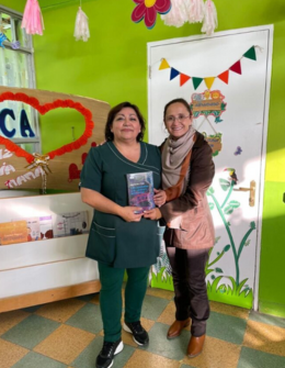 Resffa Hernández, Directora del Jardín Infantil de la Base Cerro Moreno, quien recibió el libro de regalo: “Trastornos del Espectro Autista de Alto Funcionamiento, Otra Forma de Aprender”.