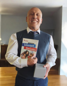 Johnny Ascencio, profesor de Calama fue quien recibió el libro de regalo del mes de julio denominado “Internet para docentes”.