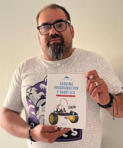 Yerko Rojas , apoderado fue la ganador del libro del mes de mayo, del texto llamado “Arduino Programación y Robótica”